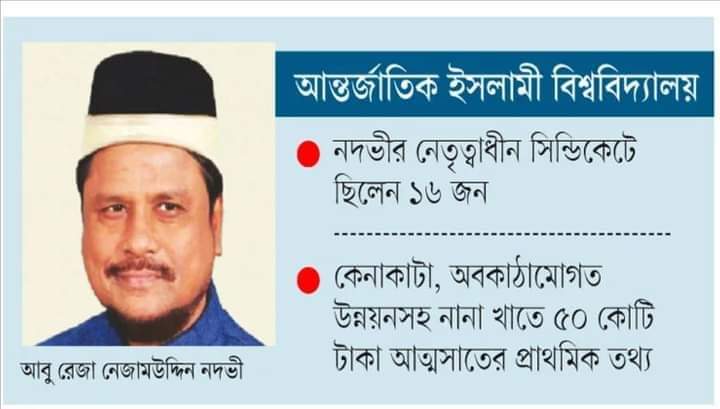 বিশ্ববিদ্যালয়ের ট্রাস্টি বোর্ডের চেয়ারম্যান নদভীর নেতৃত্বাধীন সিন্ডিকেটে তাঁর স্ত্রী রিজিয়া সুলতানা চৌধুরী, সাবেক পররাষ্ট্রমন্ত্রী হাছান মাহমুদের ভাই খালেদ মাহমুদও ছিলেন প্রভাবশালী। অভিযোগ পেয়ে দুর্নীতির অনুসন্ধানে নেমেছে দুদক। চলছে বিশ্ববিদ্যালয়ের অভ্যন্তরীণ তদন্তও।